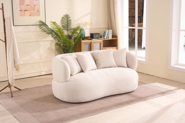 Komfortabel 2 personers sofa fremstillet i creme farvet slidstærkt møbelstof. Sofaen har et elegant og stilrent design, og har fjedre og koldskum i hynderne.