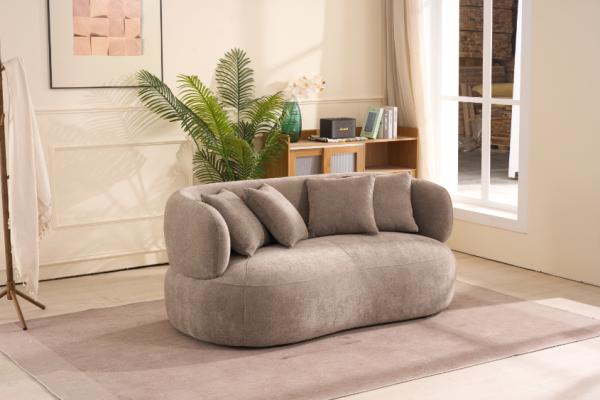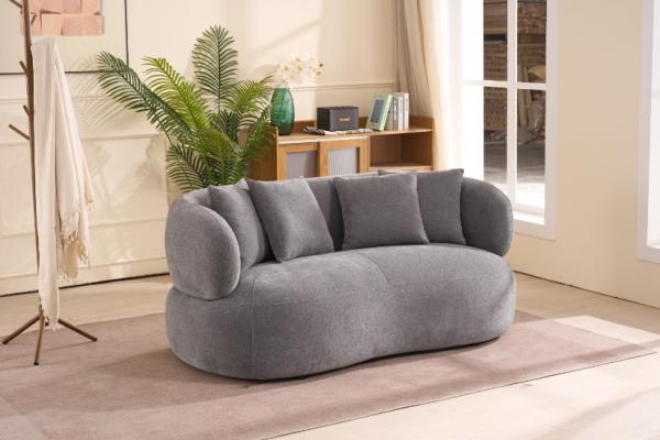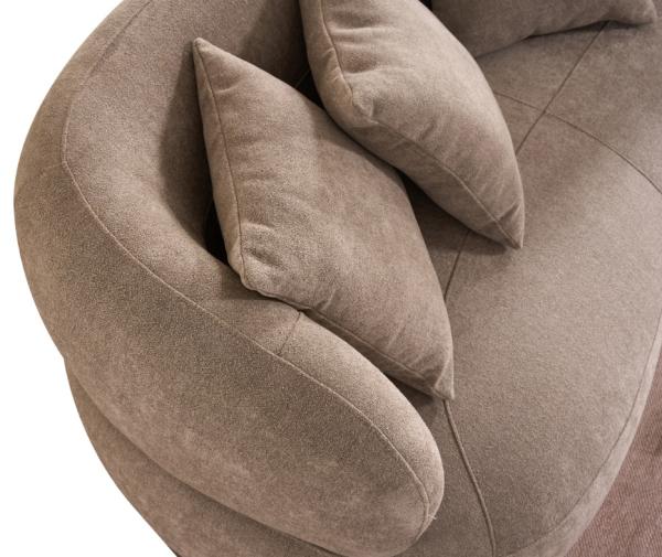 Sofaen er betrukket med slidstærkt møbelstof. Det har en behagelig blød overflade, samtidig med det er holdbart og nemt at holde rent.