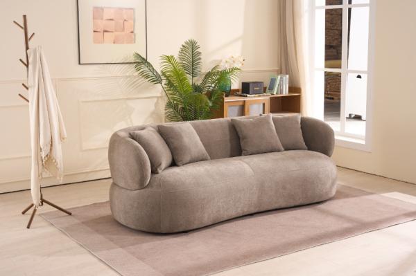 Sofaen er betrukket med slidstærkt møbelstof. Det har en behagelig blød overflade, samtidig med det er holdbart og nemt at holde rent.
