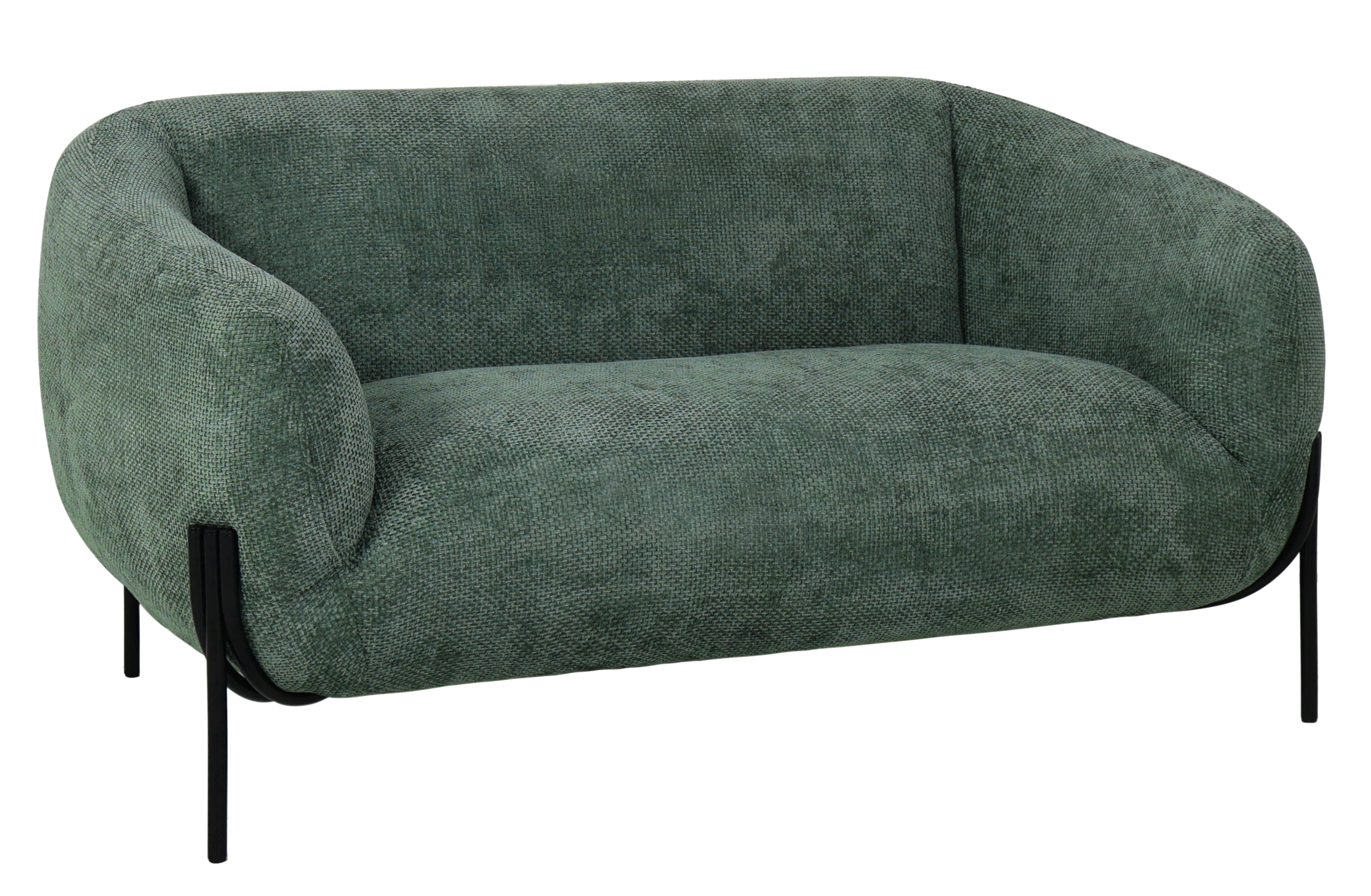 Udine 2 personers sofa har et holdbart og behageligt mørkegrøn stof på alle flader.