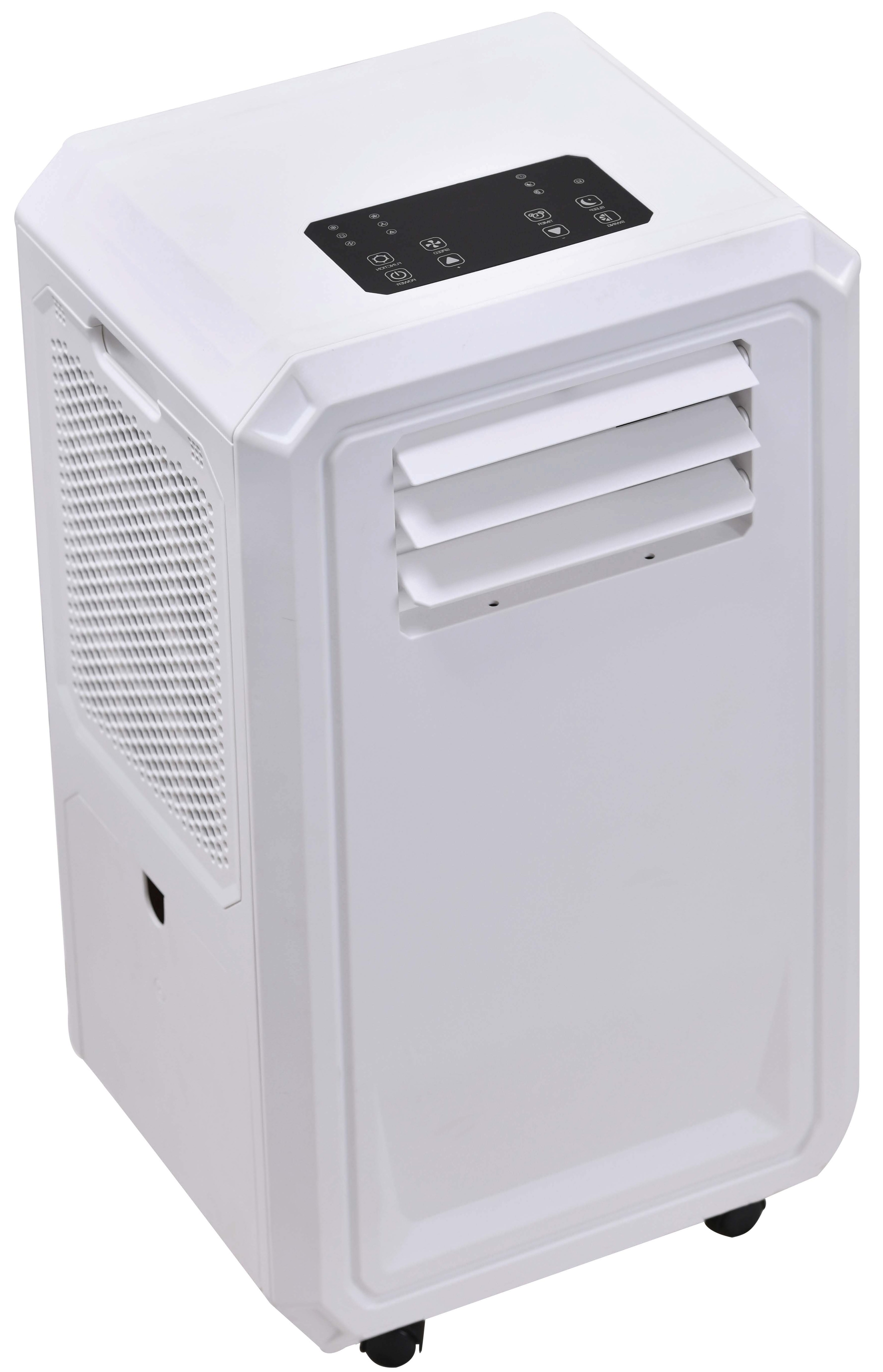 Airconditionen styres via et touch-panel med LED-display og har praktiske funktioner som auto-tilstand, sleep-mode, børnelås og 24-timers timer. Den store vandtank giver længere driftstid. Den hoseløse teknologi betyder, at den fungerer uden varm luft eller aftræksslange, da vand absorberer varmen og fordamper den.