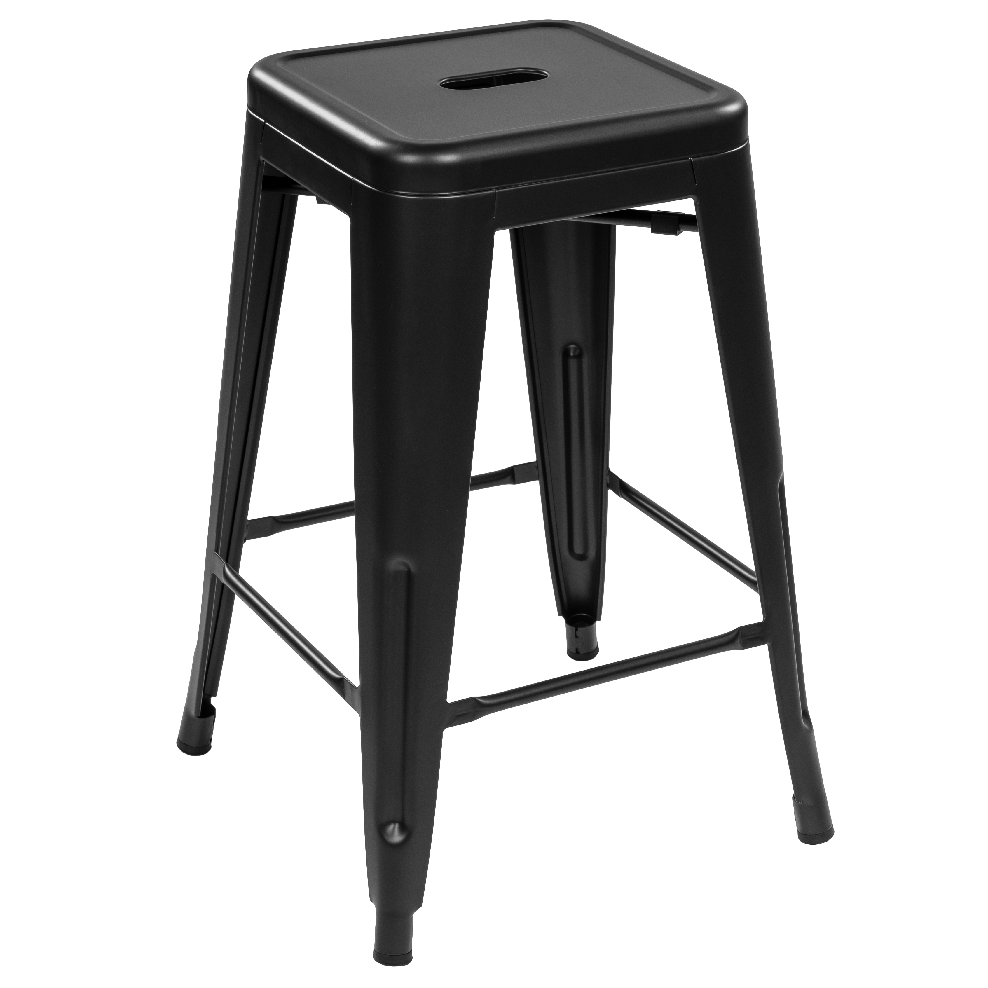 Vintage barstol i metal med rustikt og industrielt design. LaQuinte barstol sort er praktisk at flytte rundt med da det også er en stabelstol.