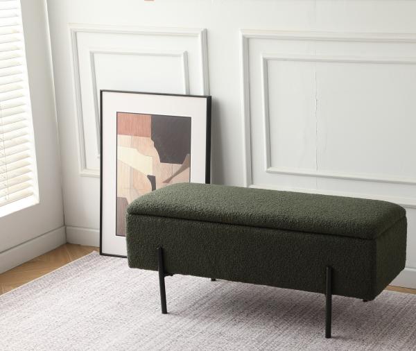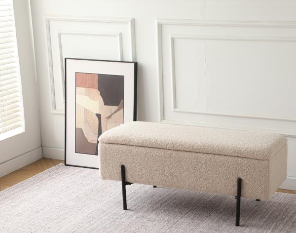 Praktisk polstret blød bænk med opbevaring i beige velour med pulverlakeret metalben. Vibe fra Homeville er en smart bænk som pynter i husets entre.