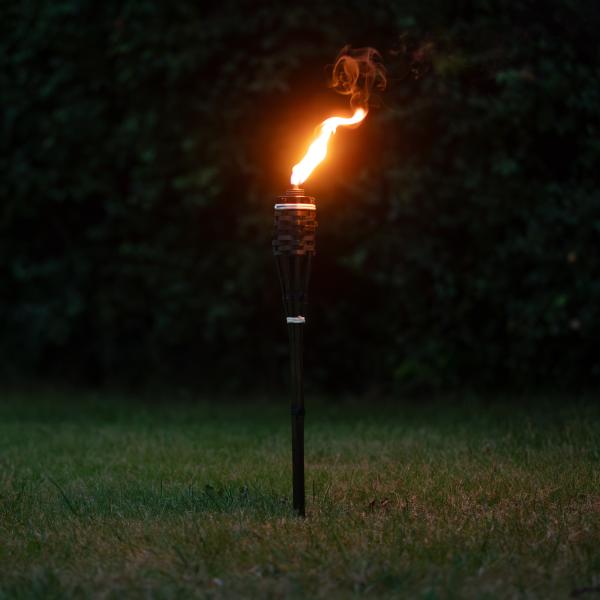 Faklen er fremstillet i bambus, og har en oliebeholder på 0,25 L, som giver en brændetid på ca. 10 timer.