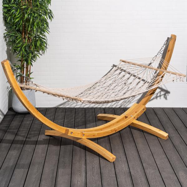 Premium hængekøje 200x100cm i cremefarvet net giver maksimal komfort og afslapning.
