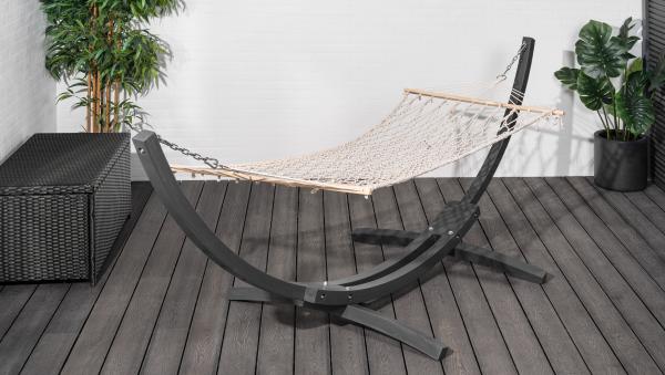 Med en stander, er det ikke nødvendigt med træer i haven for montering af sin hængekøje. Dette gør standeren til et fleksibelt, praktisk og holdbart valg.