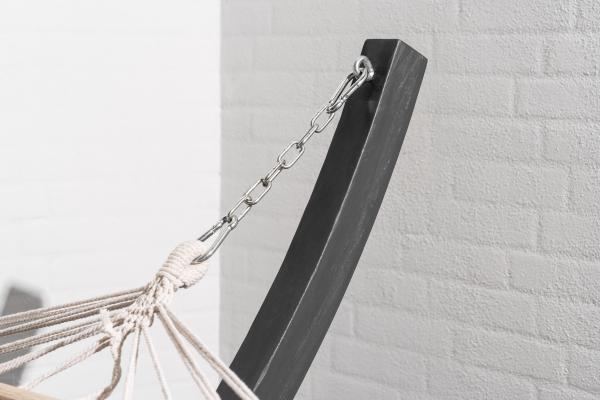 Hængekøjestanderen kombinerer funktionalitet med et smukt design. De runde buer og det kastanje farvet finish giver et moderne minimalistisk udseende.