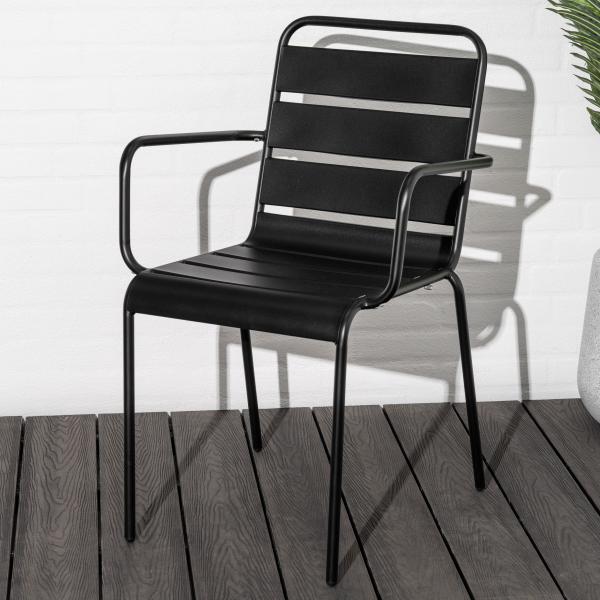 Metalstol med et stilrent og enkelt design, og passer til diverse spiseborde og haveborde.