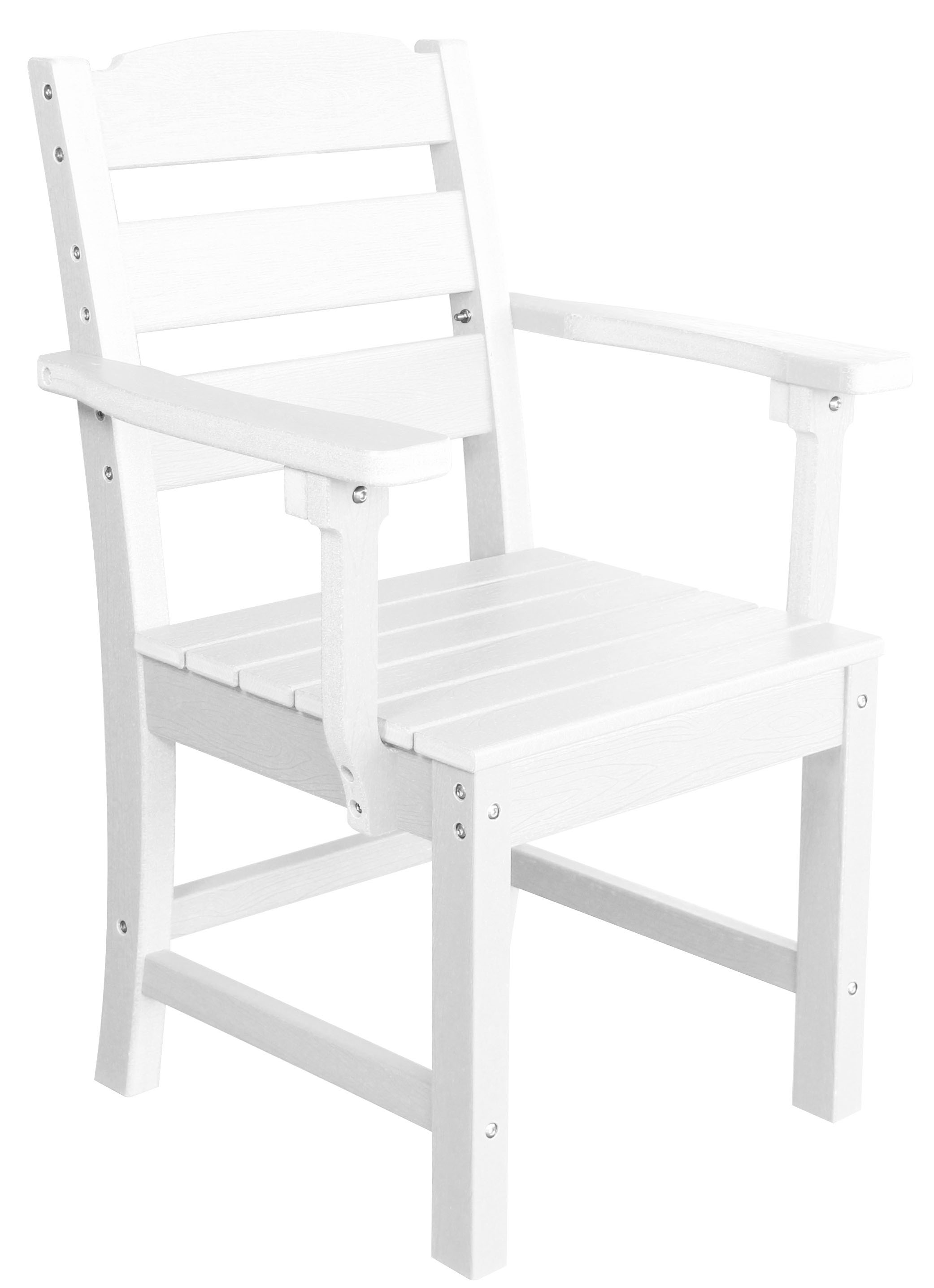 Moderne og stilren stol med armlæn i komposit bidrager til et hyggeligere udendørsmiljø og er modstandsdygtig over for vind og vejr.