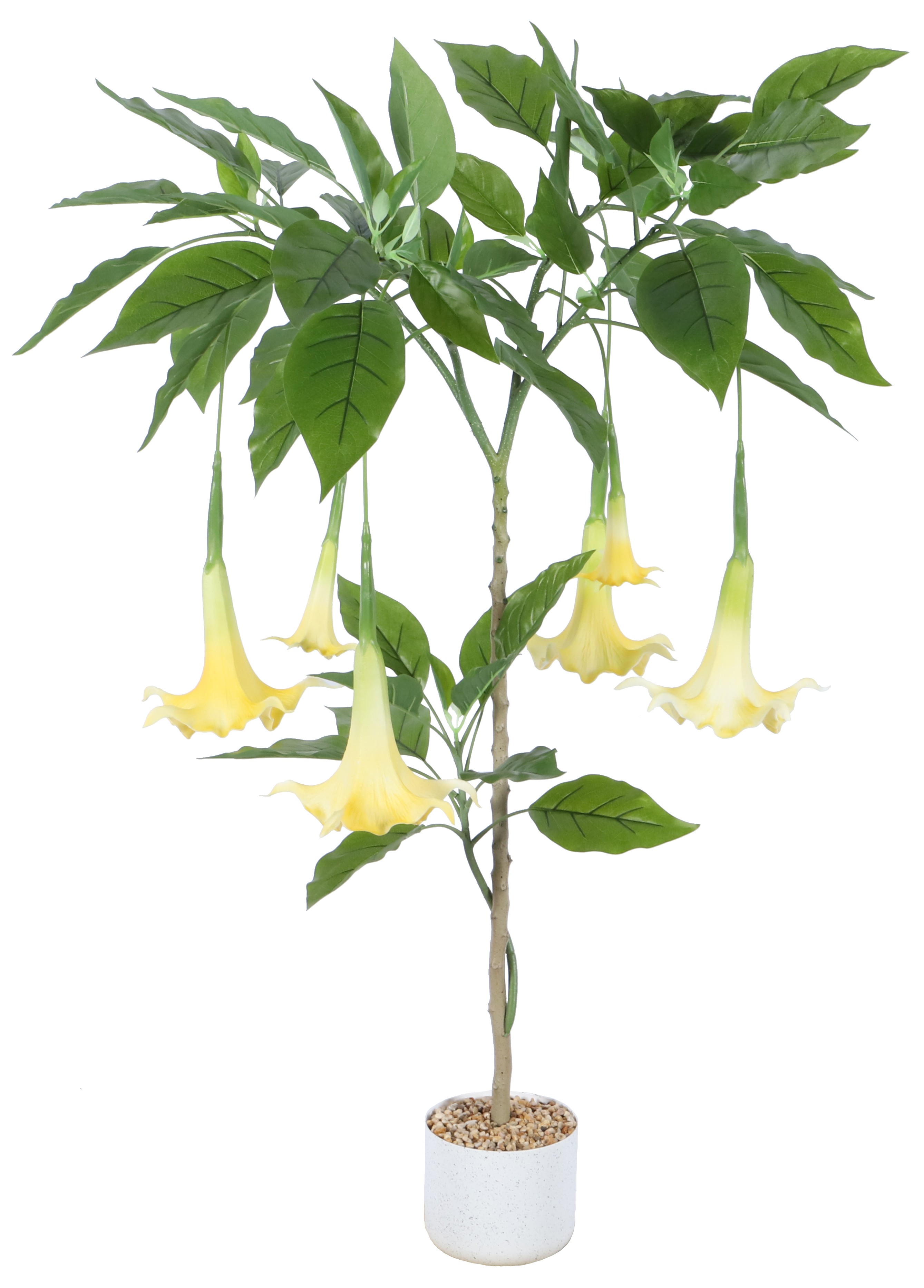 I dette kunstige daturatræ, får du en holdbar, vedligeholdelsesfri løsning, der bidrager til et behageligt og stilfuldt indeklima.
