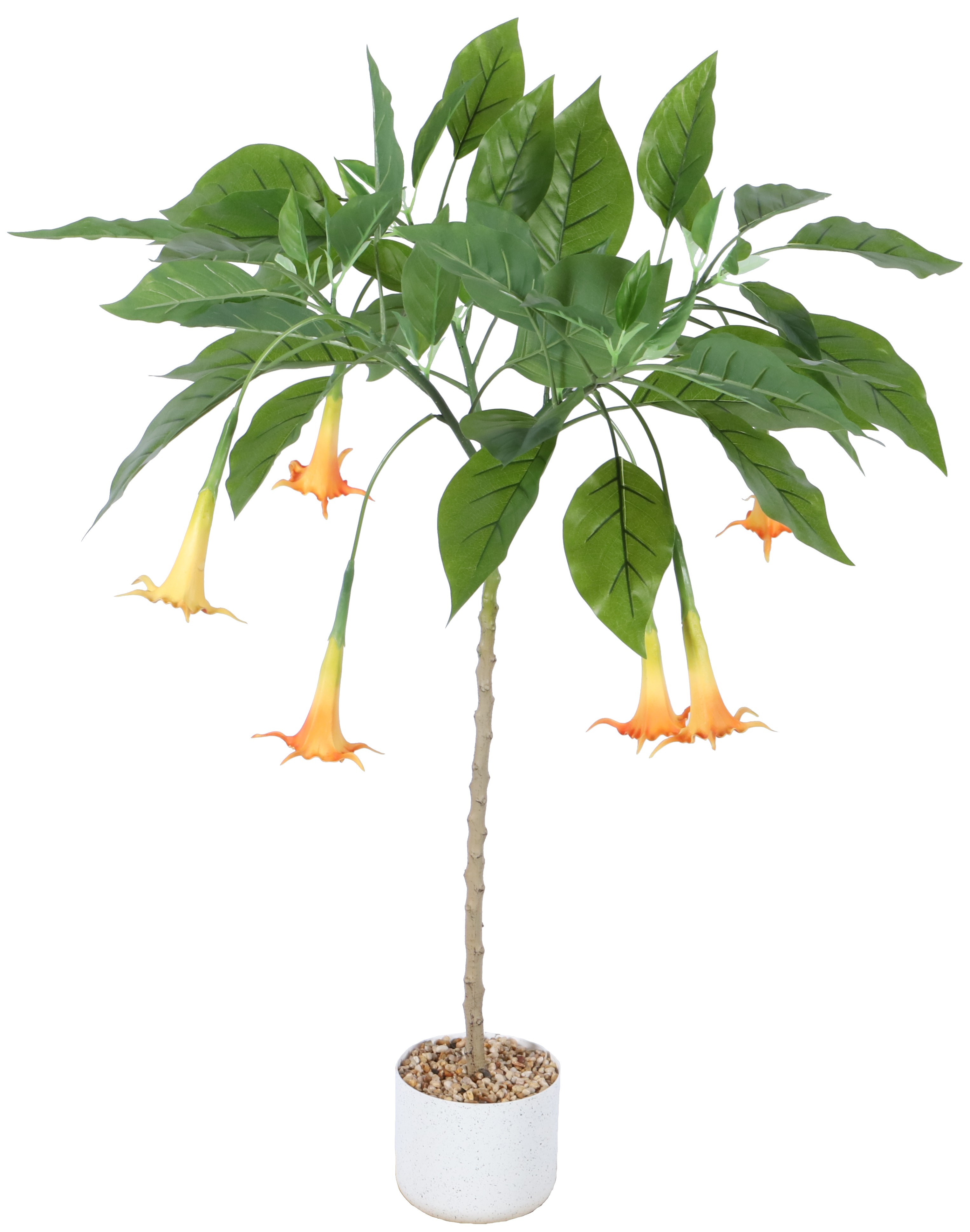 I dette kunstige daturatræ, får du en holdbar, vedligeholdelsesfri løsning, der bidrager til et behageligt og stilfuldt indeklima.