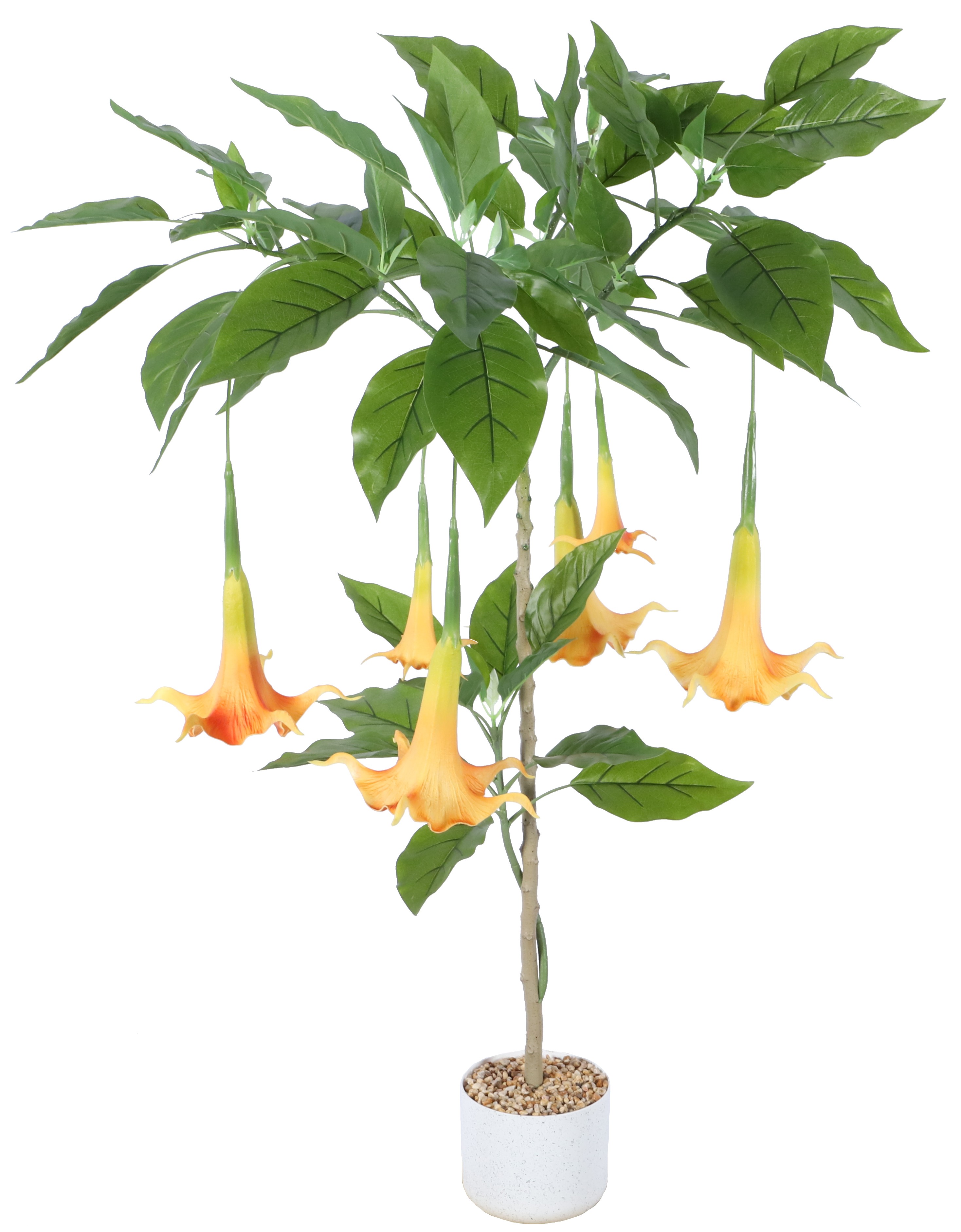 I dette kunstige daturatræ, får du en holdbar, vedligeholdelsesfri løsning, der bidrager til et behageligt og stilfuldt indeklima.