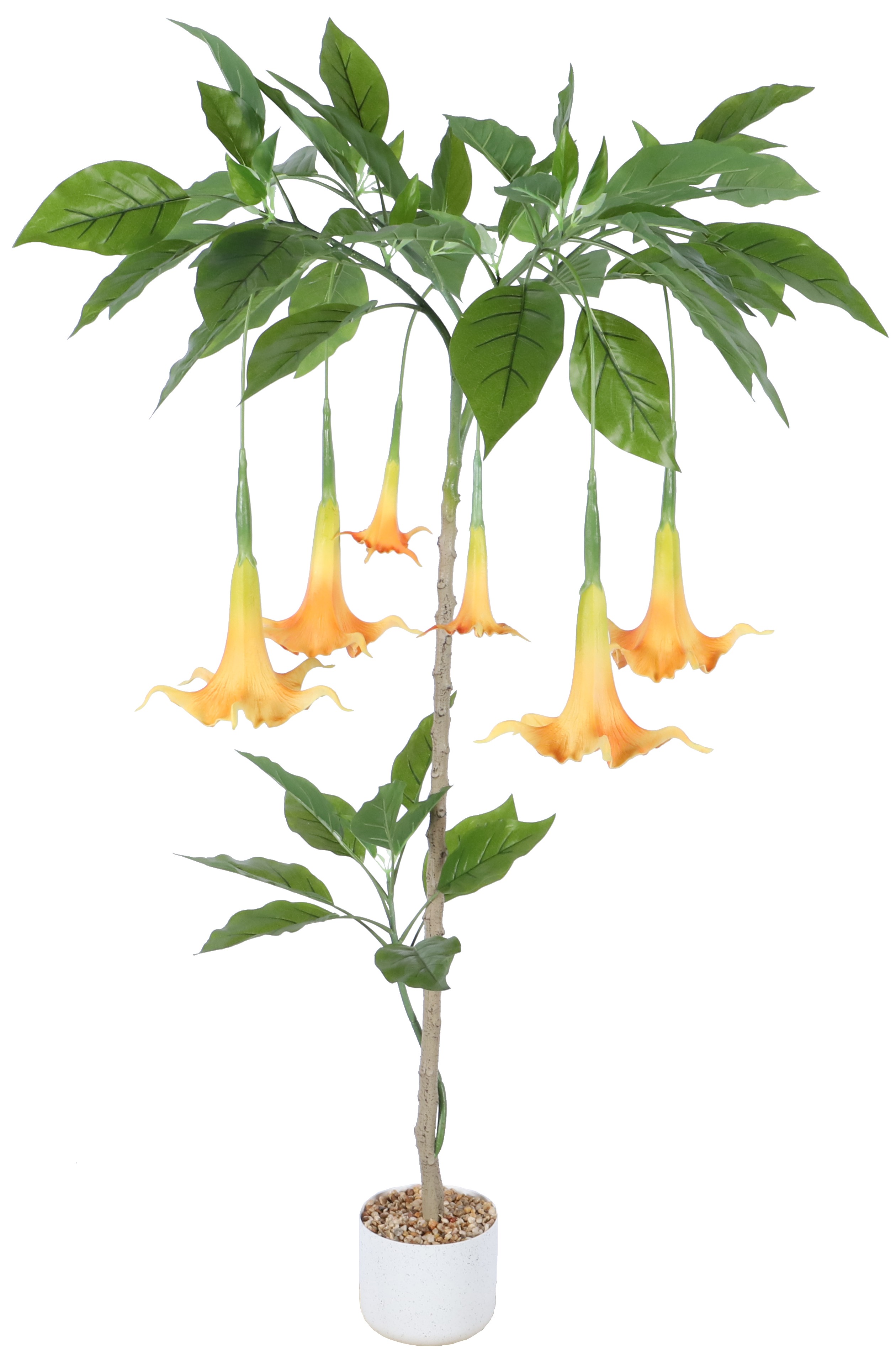 I dette kunstige daturatræ, får du en holdbar, vedligeholdelsesfri løsning, der bidrager til et behageligt og stilfuldt indeklima.