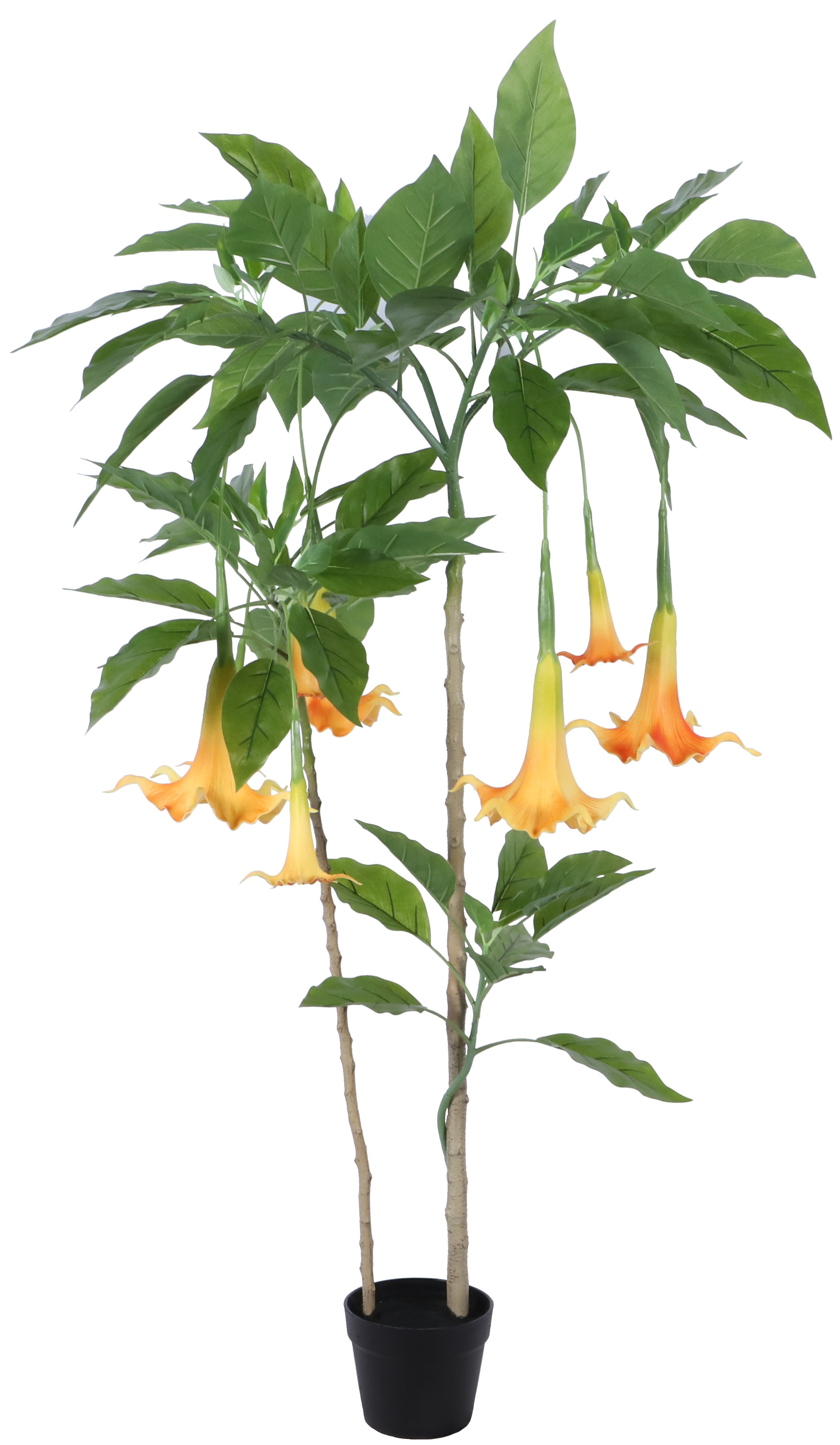 I dette kunstige daturatræ, får du en holdbar, vedligeholdelsesfri løsning, der bidrager til et behageligt og stilfuldt indeklima.