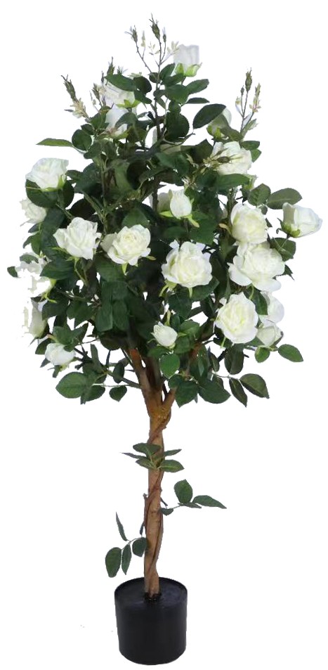 Det kunstige rosetræ i hvid passer godt ind i både hjemmet, på arbejdspladsen, i receptioner eller i caféer, hvor der er behov for et roligt og farverigt element.