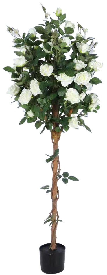 Det kunstige rosetræ i hvid passer godt ind i både hjemmet, på arbejdspladsen, i receptioner eller i caféer, hvor der er behov for et roligt og farverigt element.