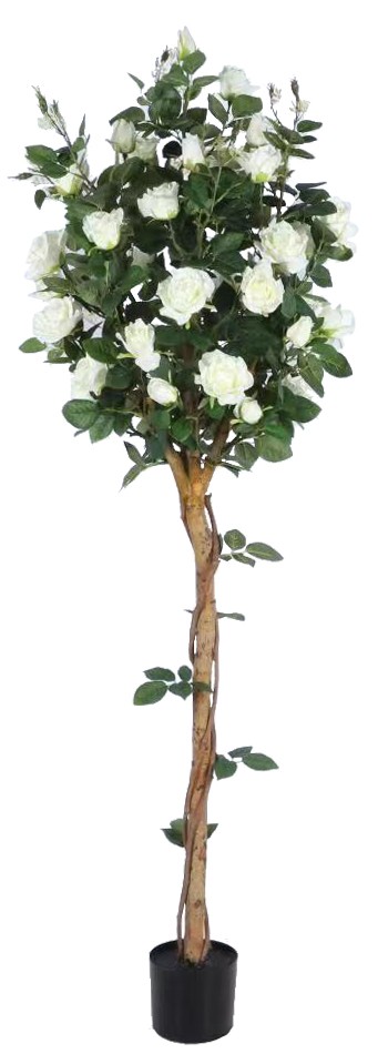 Det kunstige rosetræ i hvid passer godt ind i både hjemmet, på arbejdspladsen, i receptioner eller i caféer, hvor der er behov for et roligt og farverigt element.