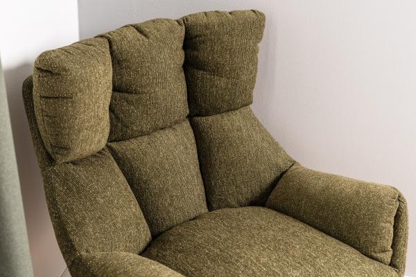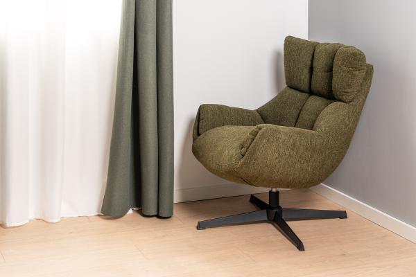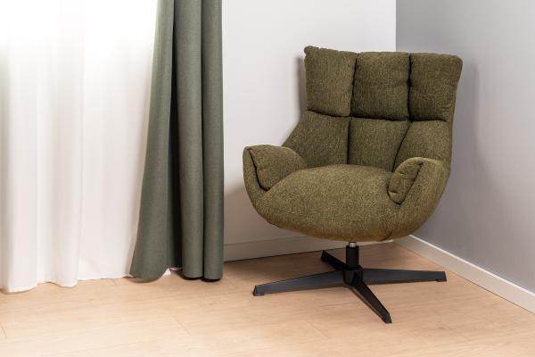 Smart og funktionel lænestol med 360° drejefunktion i mørkegrøn møbelstofstof. Maltera tilføjer kvalitet og komfort til hjemmet.