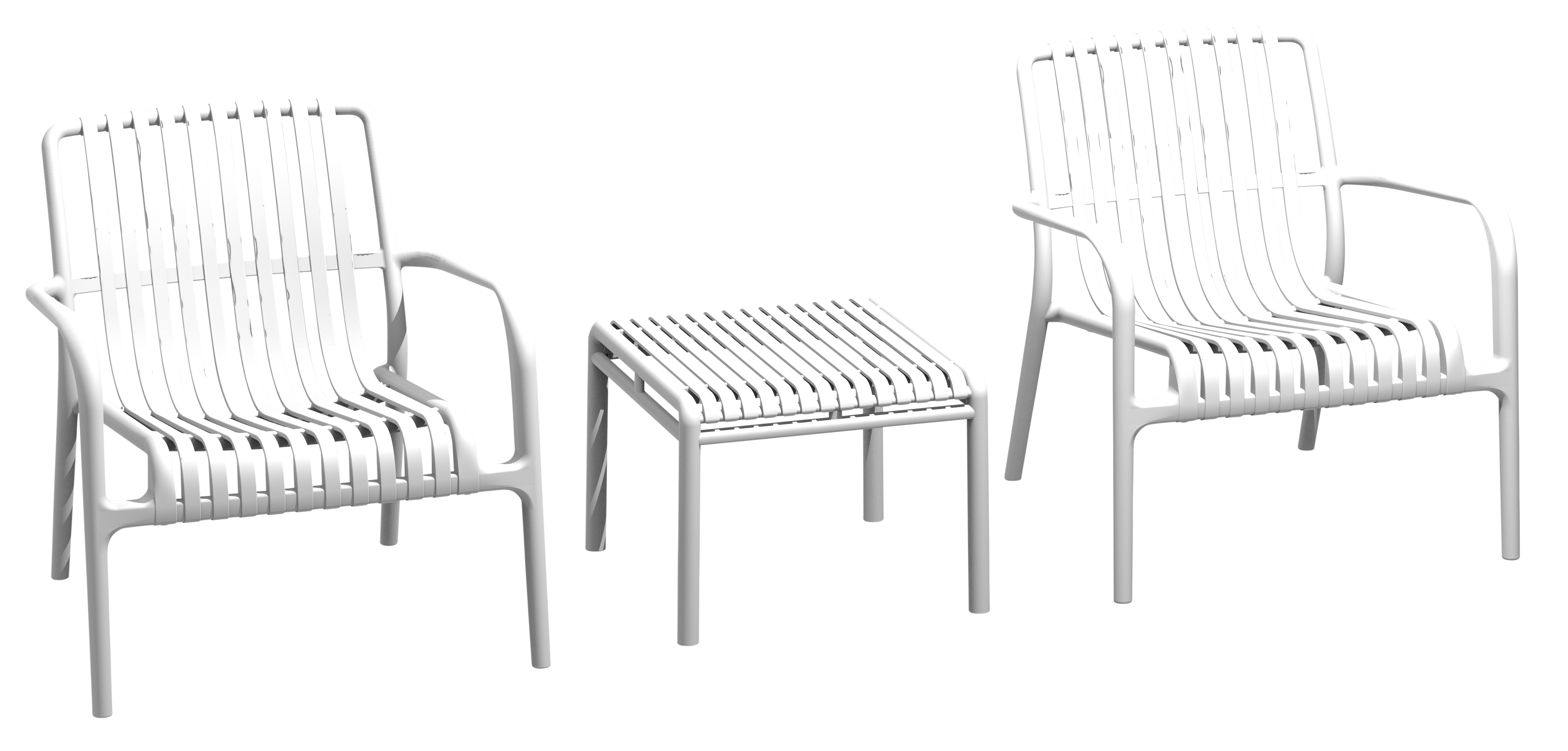 Loungesættet er lavet i plastik, som er yderst robust og nemt at vedligeholde.