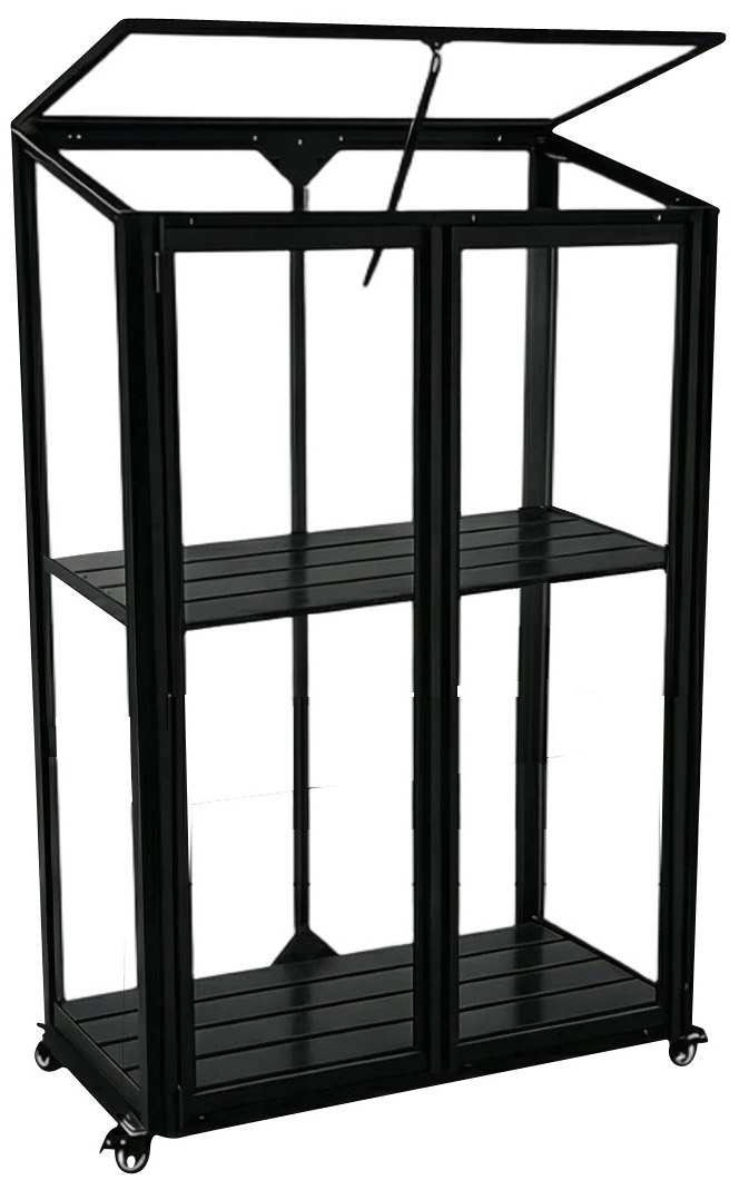 Stellet er fremstillet i pulverlakeret sort aluminium. Det bidrager til et flot design, og giver et stabilt minidrivhus.