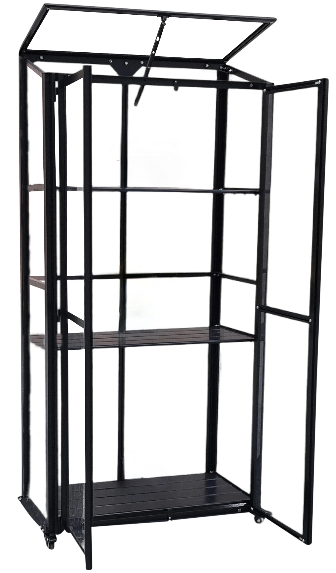 Stellet er fremstillet i pulverlakeret sort aluminium. Det bidrager til et flot design, og giver et stabilt minidrivhus.