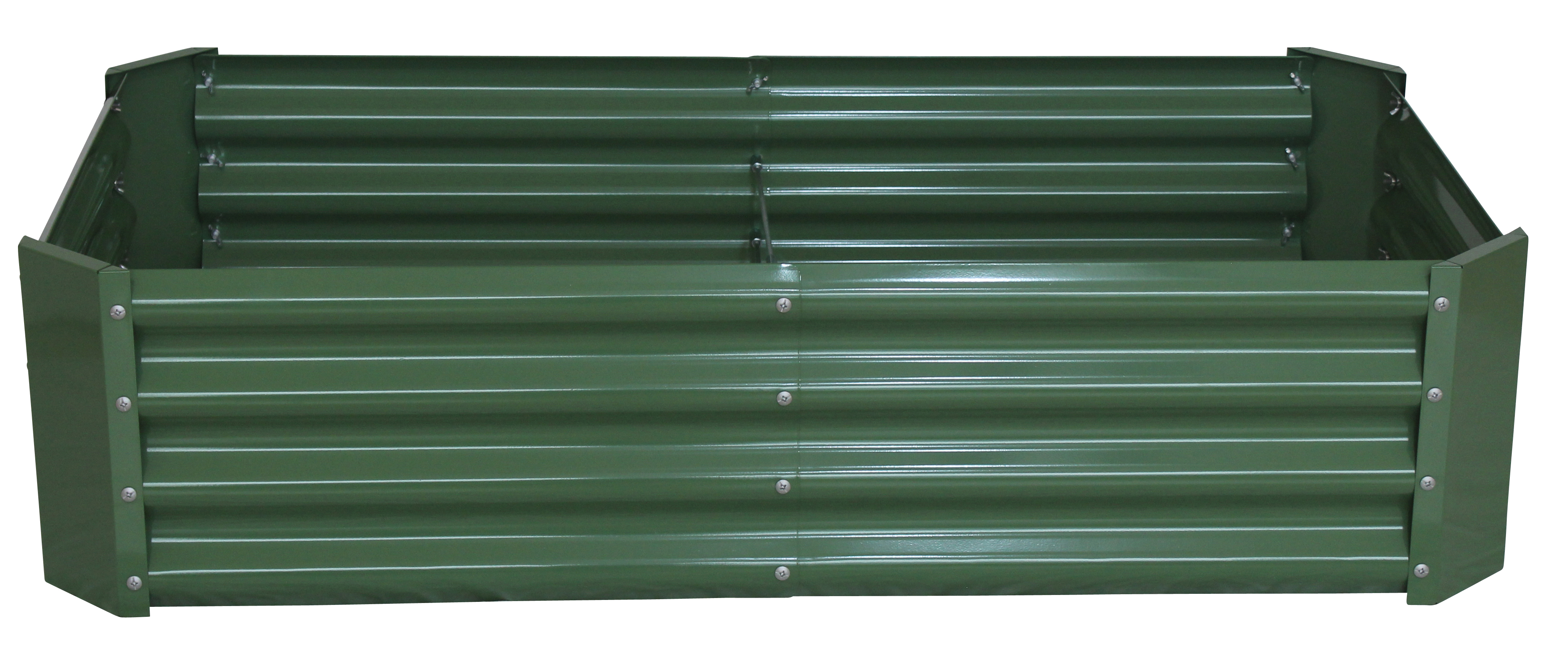 Stilrent højbed i galvaniseret stål med et moderne bølgeformet design. Workmann plantekassen i grøn er både holdbart og giver et flot udtryk.