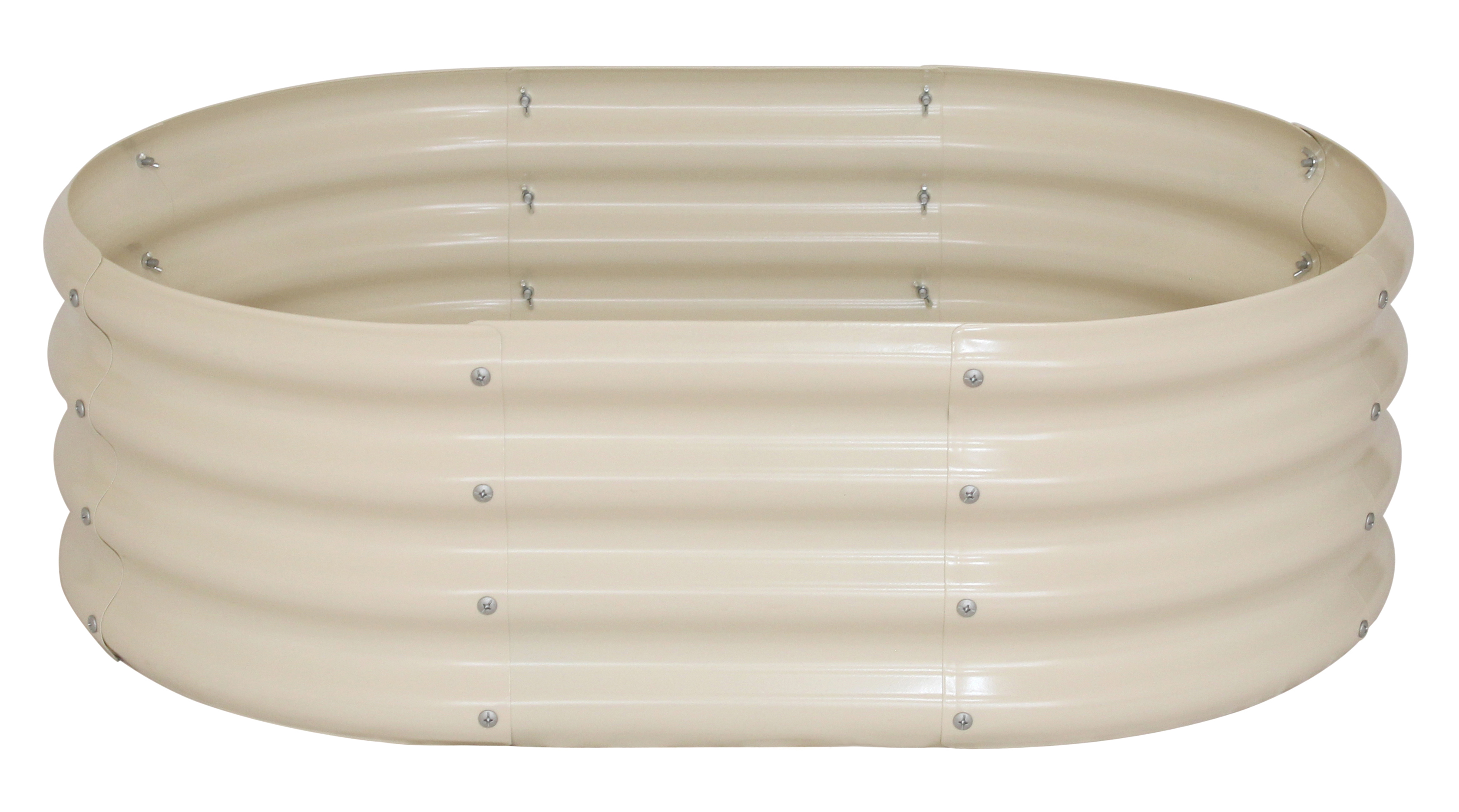 Stilrent højbed i galvaniseret stål med et moderne bølgeformet design. Workmann plantekassen i beige er både holdbart og giver et flot udtryk.