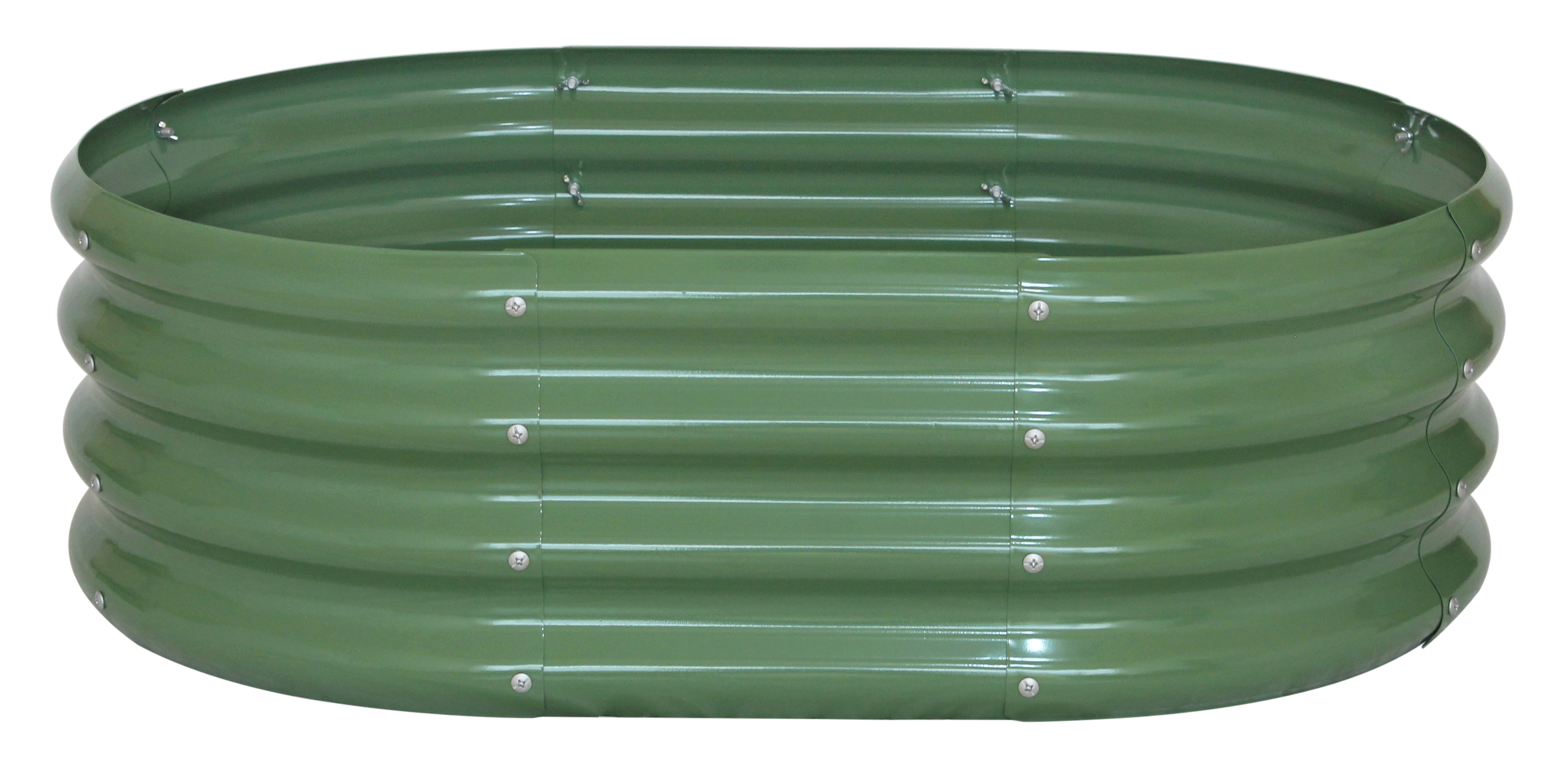Stilrent højbed i galvaniseret stål med et moderne bølgeformet design. Workmann plantekassen i grøn er både holdbart og giver et flot udtryk.