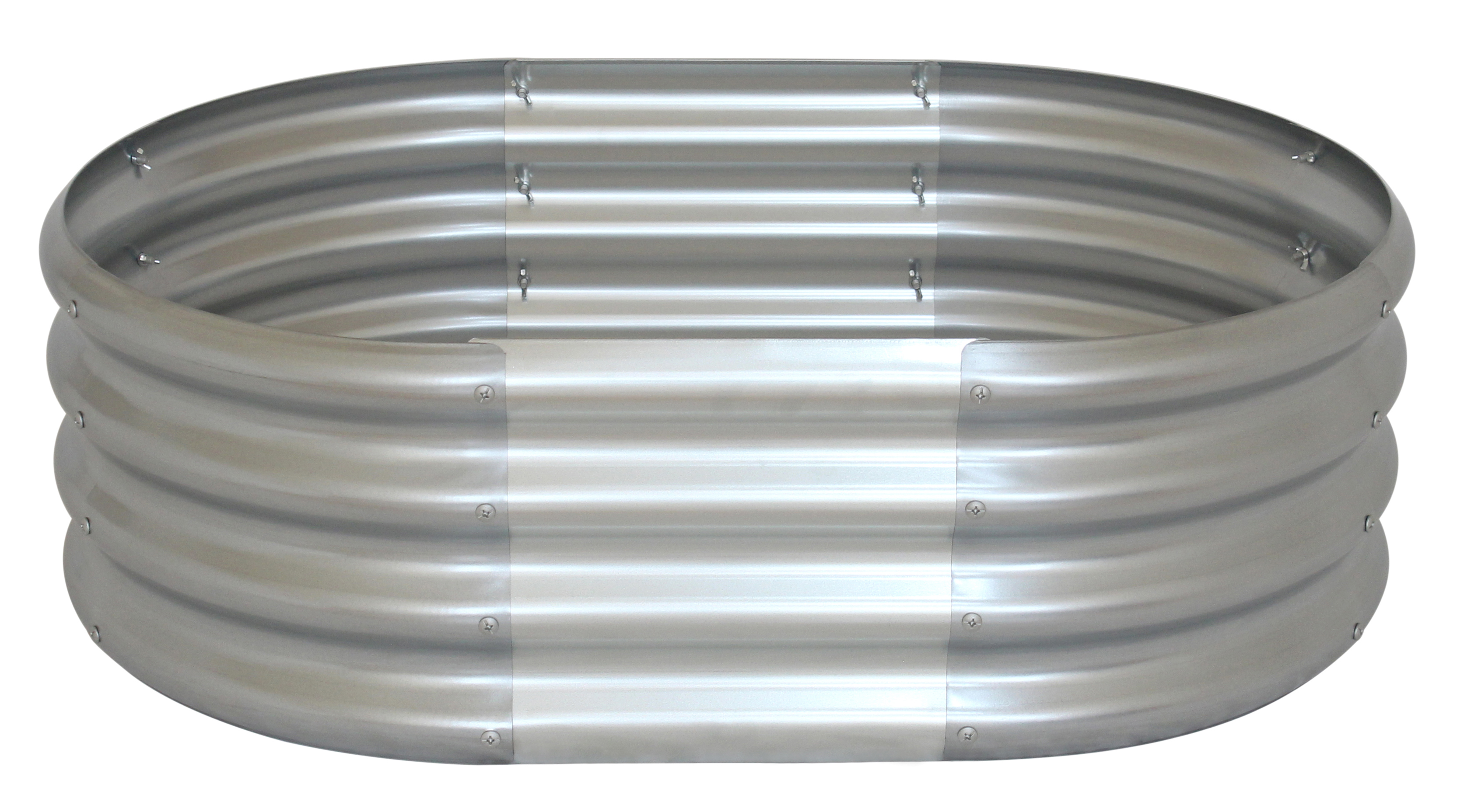 Stilrent højbed i galvaniseret stål med et moderne bølgeformet design. Workmann plantekassen i sølv er både holdbart og giver et flot udtryk.