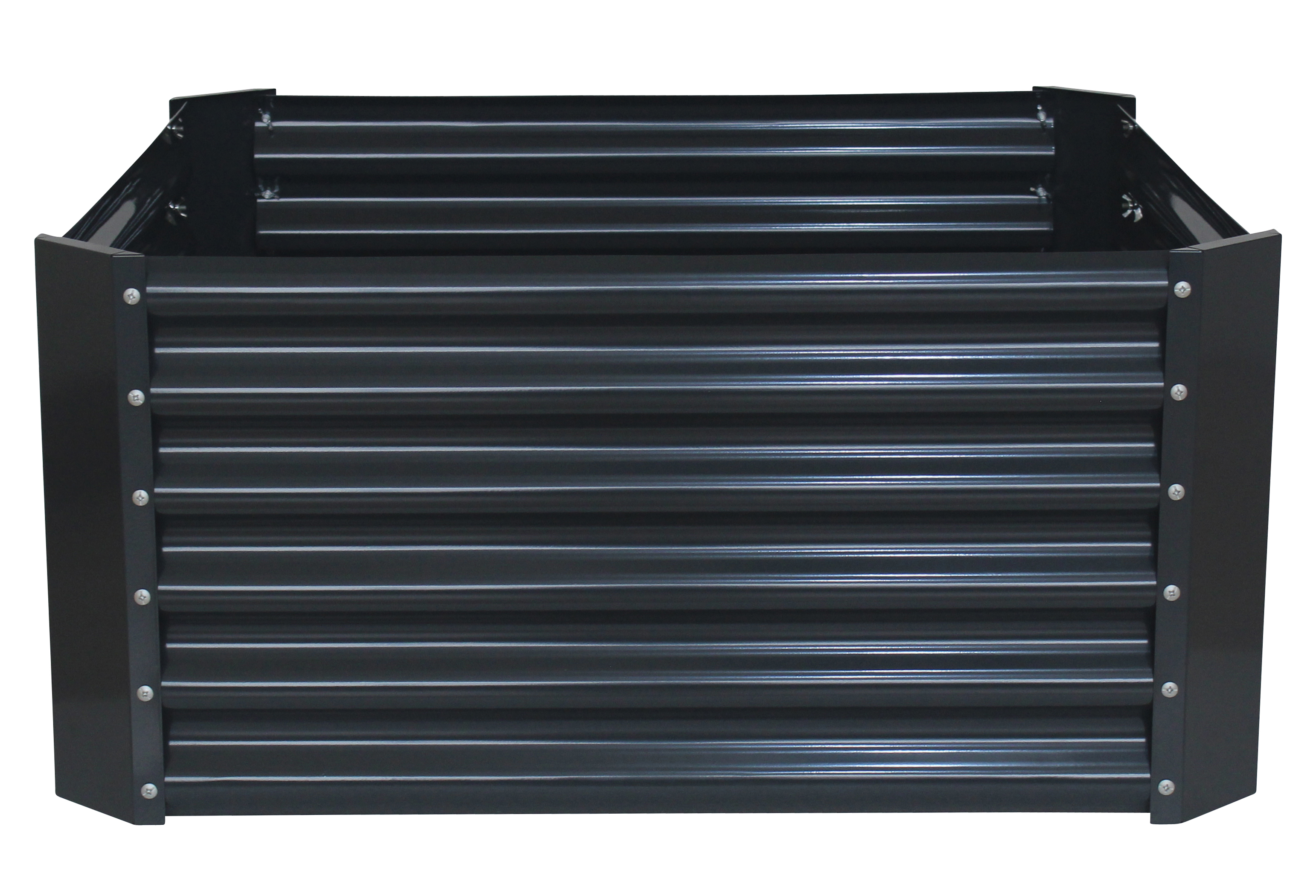 Stilrent højbed i galvaniseret stål med et moderne bølgeformet design. Workmann plantekassen i mørkegrå er både holdbart og giver et flot udtryk.