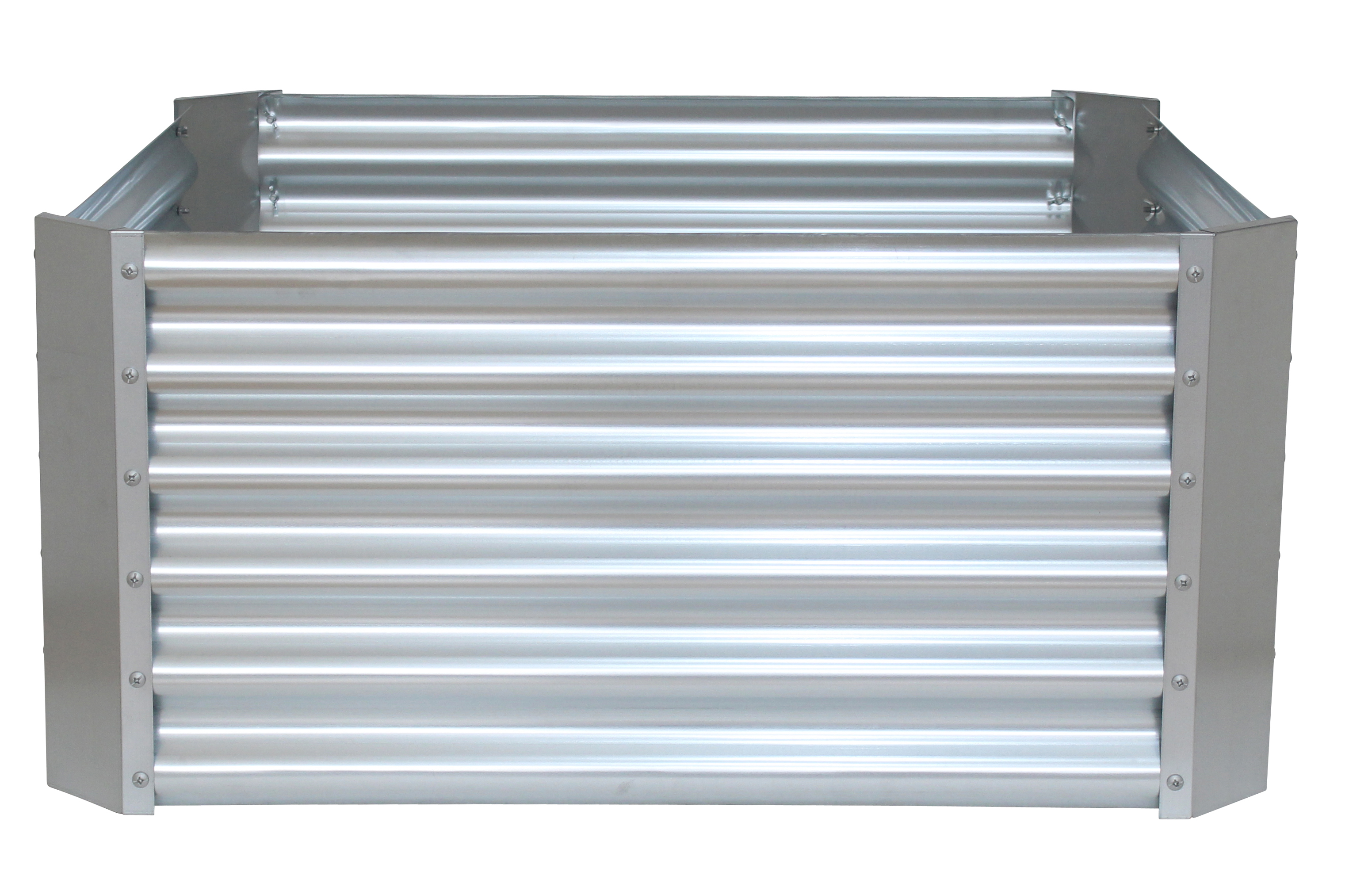 Stilrent højbed i galvaniseret stål med et moderne bølgeformet design. Workmann plantekassen i sølv er både holdbart og giver et flot udtryk.