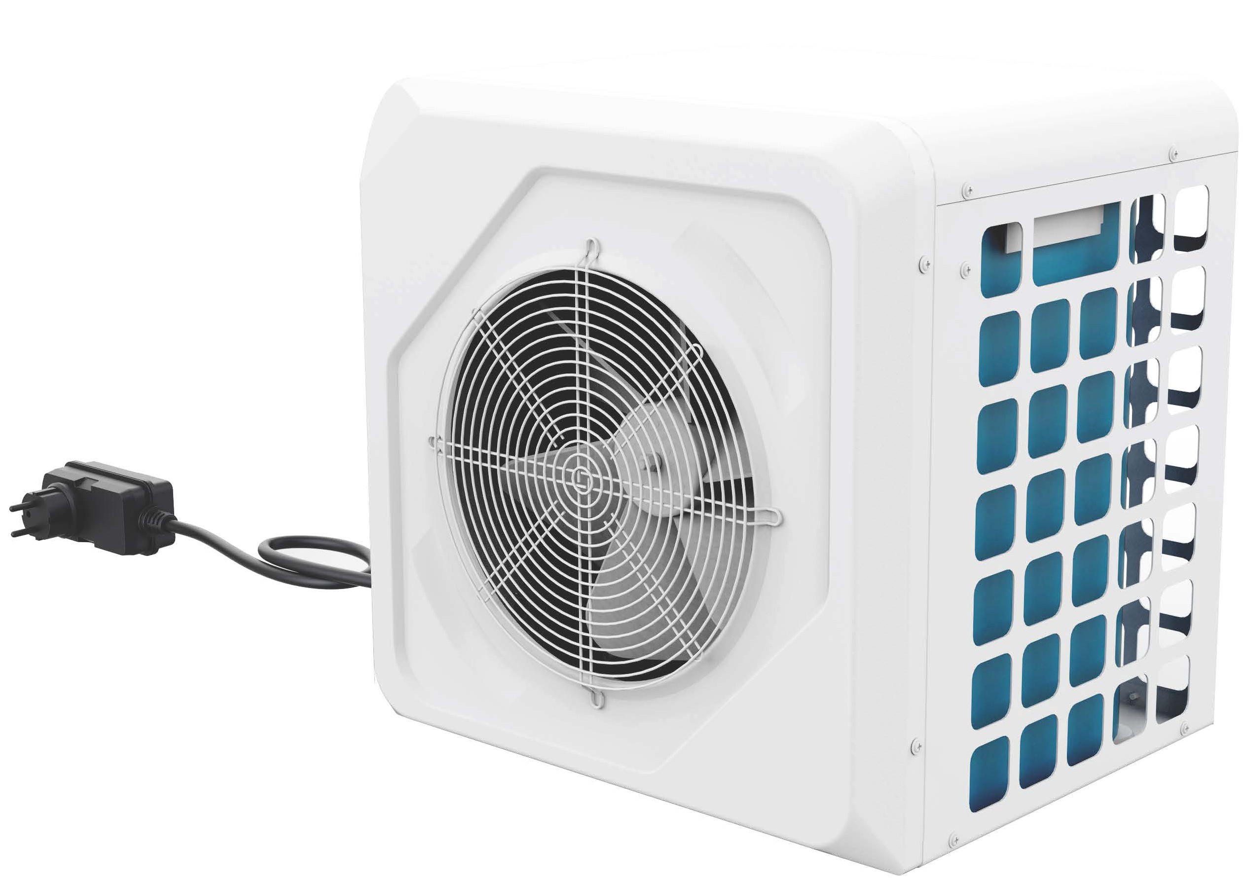 CoolSplash Heat 4 kW varmepumpe hvid – energieffektiv og stilfuld udendørs poolvarmer med titanium varmeveksler og LED-controller.