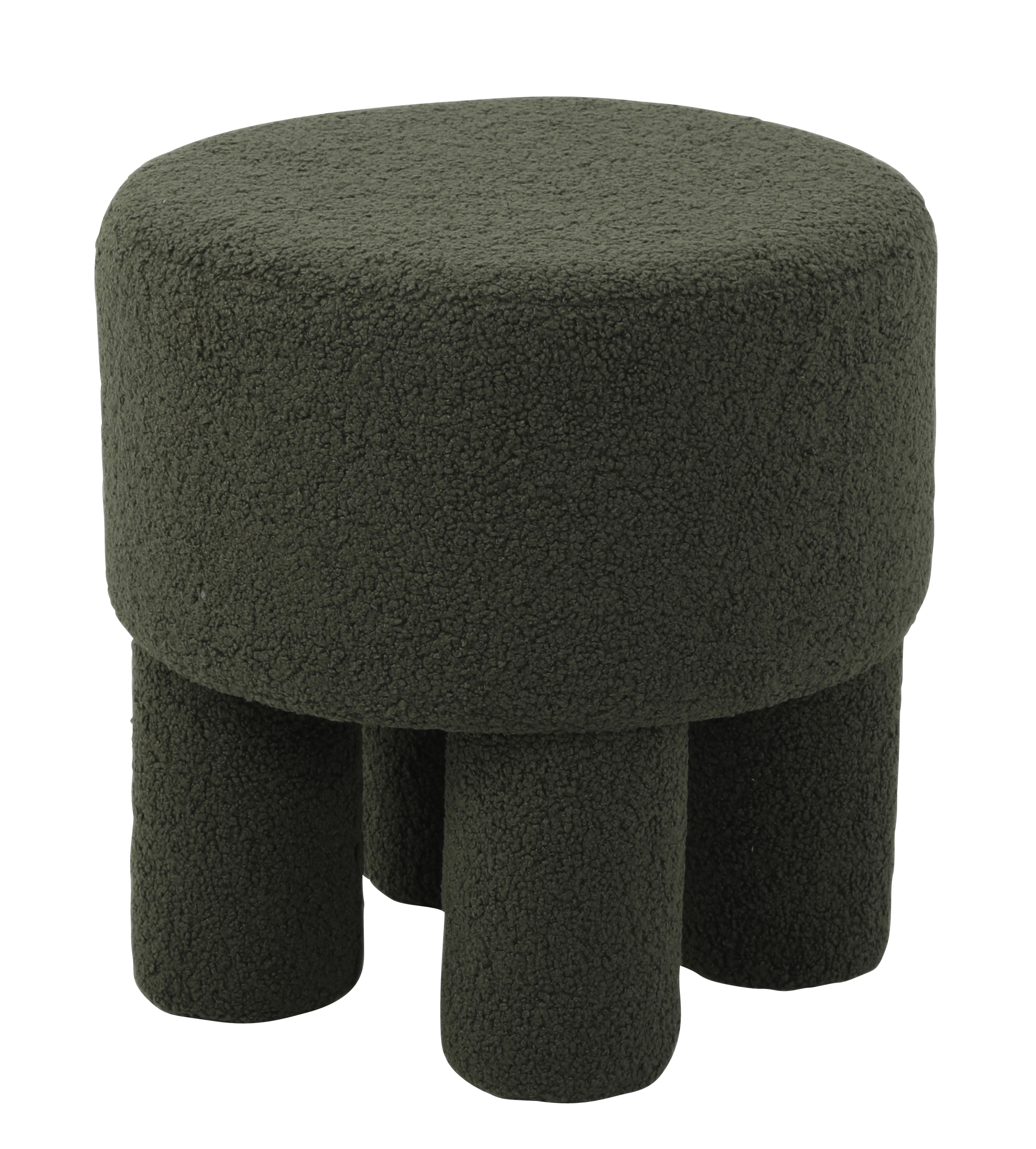 Dekorativ og moderne puf med et skulpturelt design med fire ben. Flora grøn fra Homeville er ideel som puf, fodskammel eller ekstra siddeplads.