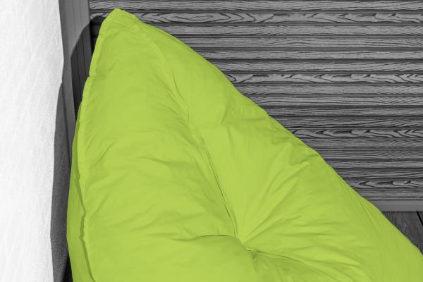 I bunden er der et slidstærkt stof, der beskytter bunden. På bagsiden af sækkestolen er der indbygget en gummiplade for at optimere støtten.