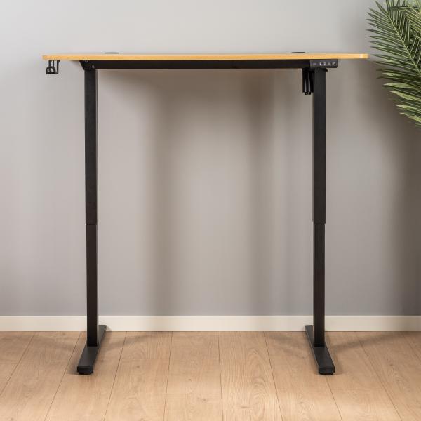 På fronten af bordpladen sidder monteringspanelet der med et tryk kan justere bordets højde fra 71-118 cm.