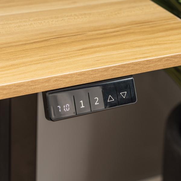 Hæve sænkebord fra Homeville med elektriske højdeindstilling sikre en dynamisk og ergonomisk arbejdsstilling. Hæve sænkebordet har et elegant og tidsløst design.