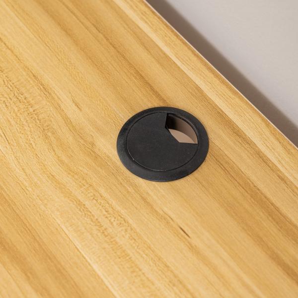 Kabeludtaget i bordpladen sikrer at ledninger kan gemmes væk og at bordplades fulde størrelse kan udnyttes.