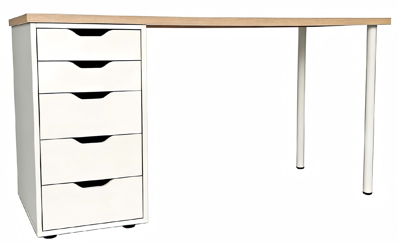 Kristiansund er et klassisk skrivebord i med hvide skuffer og natur designet bordplade. Den rene og enkle stil passer ind i de fleste rum.