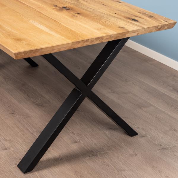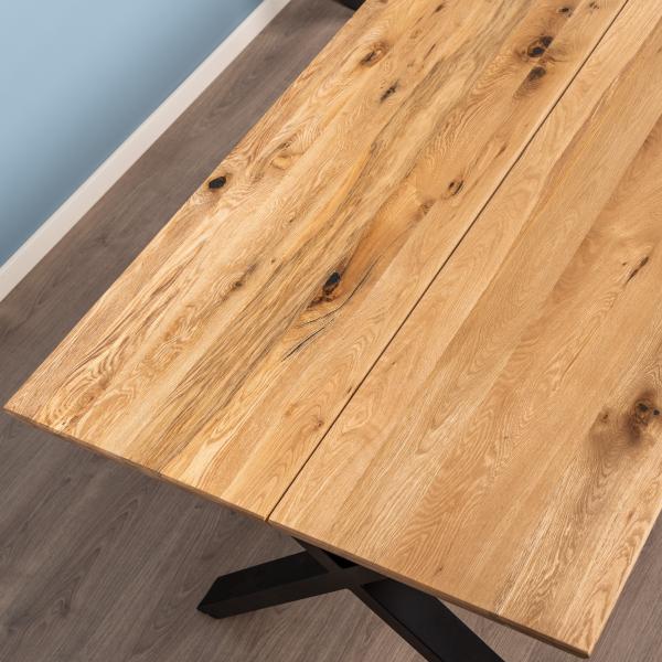 Firenze med krydsben 160x95cm i natur eg og swiss kant. Firenze er et kvalitets spisebord, som er fremstillet i lys eg med to planker.