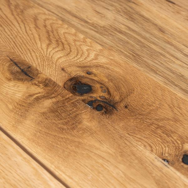 Bordpladen lavet i egetræ, og er blevet behandlet med en natur olie, så den naturlige og smukke farve fra egetræet bibeholdes. Bordkanten på langsiderne skråner, så den er bredest for oven og smallest for neden. Dette giver et stilrent og flot udtryk.