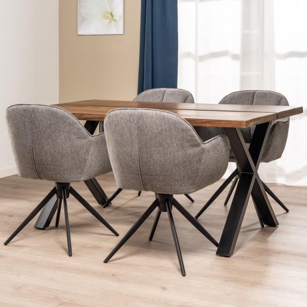 Tidløst og moderne spisebord med smoked egetræsbordplade. Firenze med sorte pulverlakeret skrå stel fra Homeville med 2 planker 160x95x74cm.