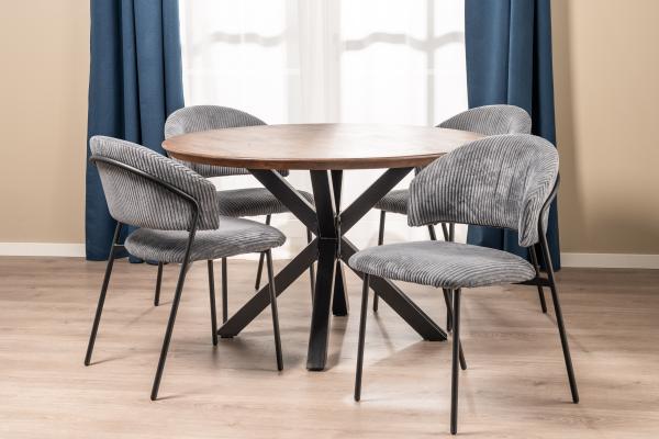 Stolen har sorte pulverlakeret metalben som giver en robust og stabil spisebordsstol.