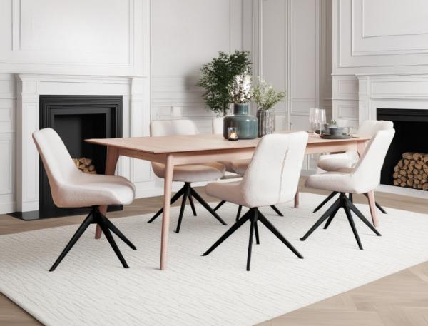 Tidløs og moderne spisebordsstol i sort teddystof med slanke sorte metalben. Helena spisebordsstol er funktionel med 360° drejefunktion.