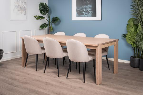 Lærke stolen er fremstillet i cremefarvet møbelstof.