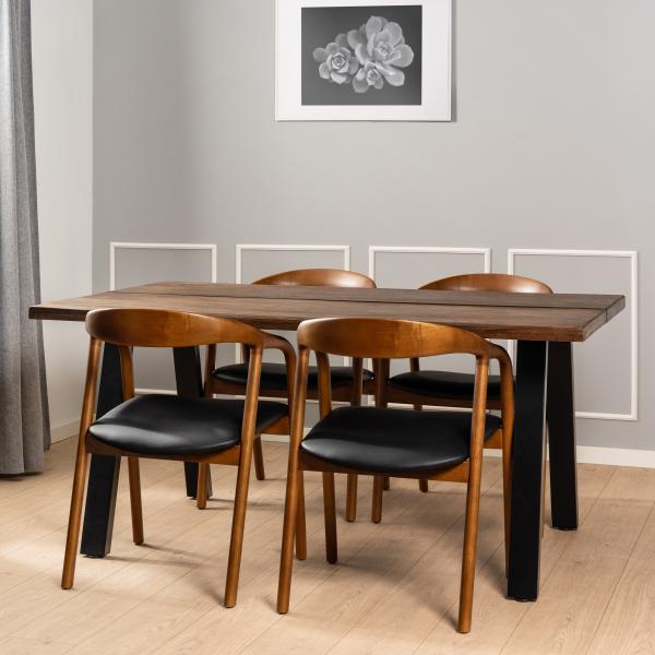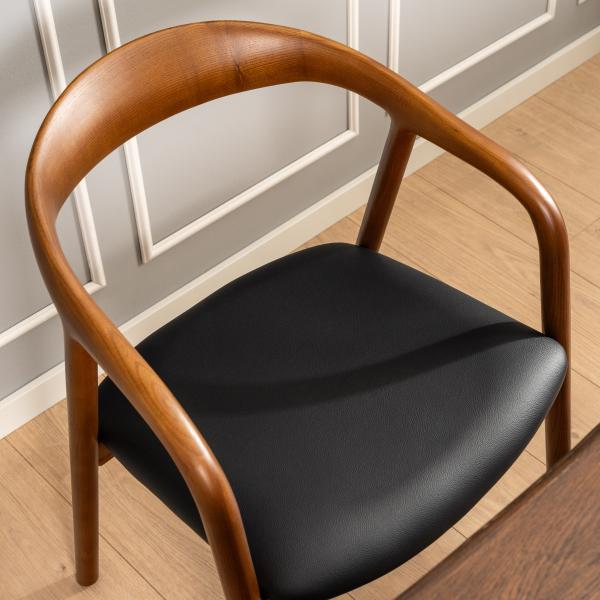Flot stilren spisebordsstol i asketræ. Manila spisebordsstol er moderne og tidsløs i naturligt materiale med sæde i sort kunstlæder.