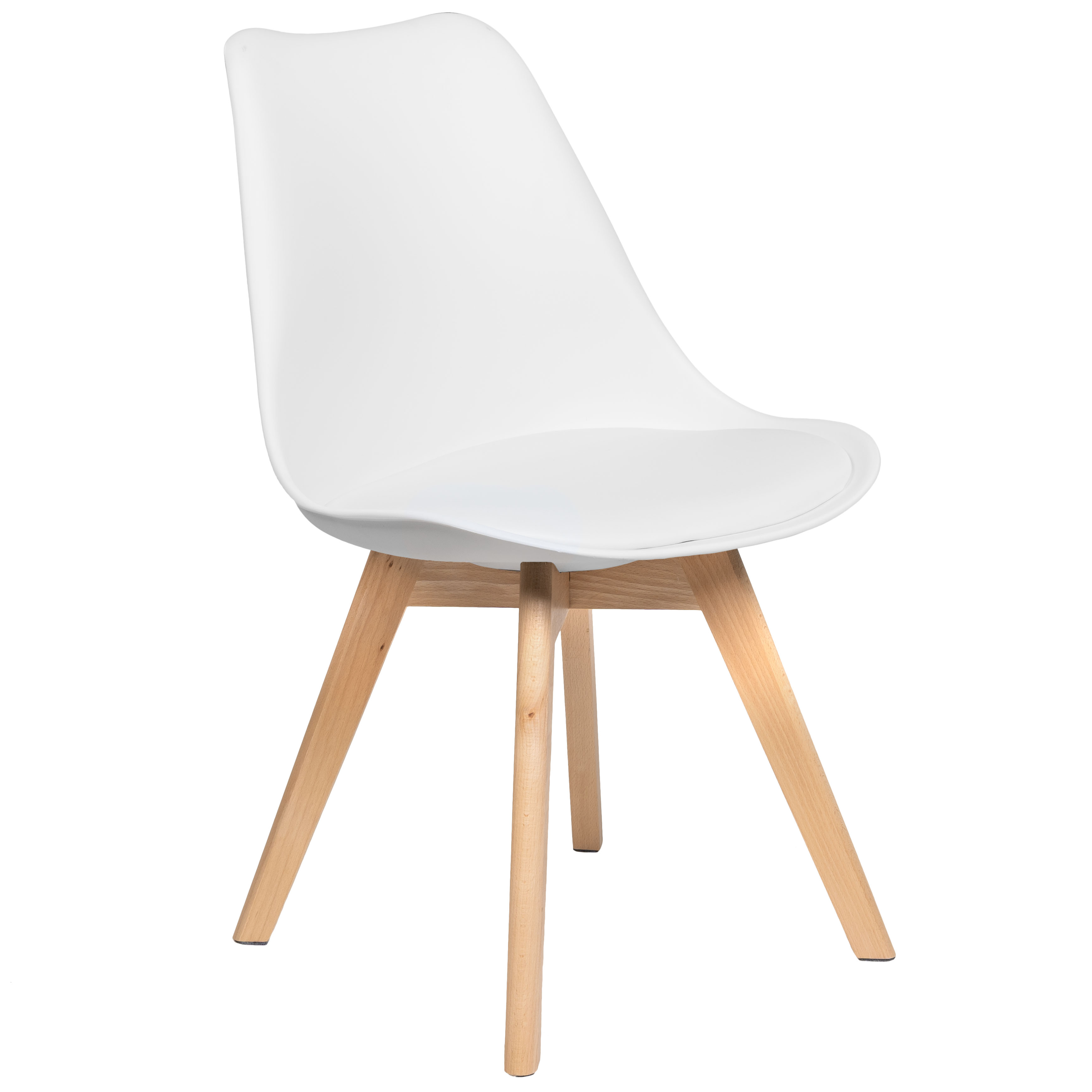 Fed og stilren hvid skalstol med bøgetræsben. Marius spisebordsstol er praktisk at rengøre og har nogle flotte detaljer som giver stolen karakter.
