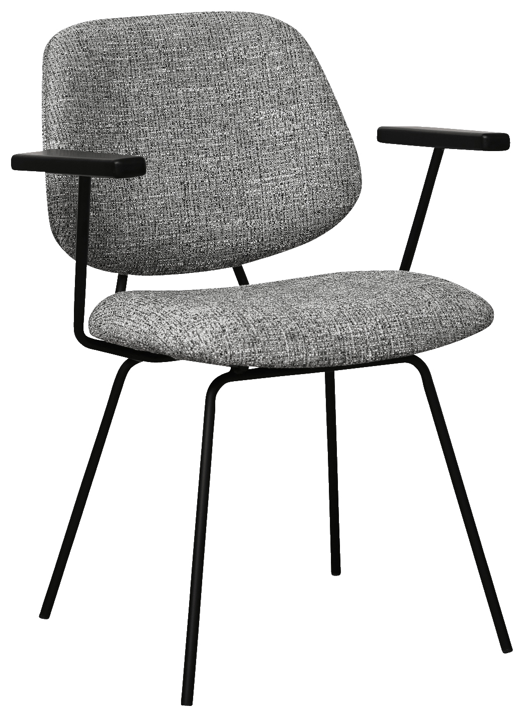 De slanke, pulverlakerede metalben i sort giver stolen et let og stilrent udtryk, samtidig med at de sikrer solid stabilitet og holdbarhed. Kombinationen af tekstur, tone og form gør stolen alsidig og nem at matche med forskellige borde og interiørstile.
