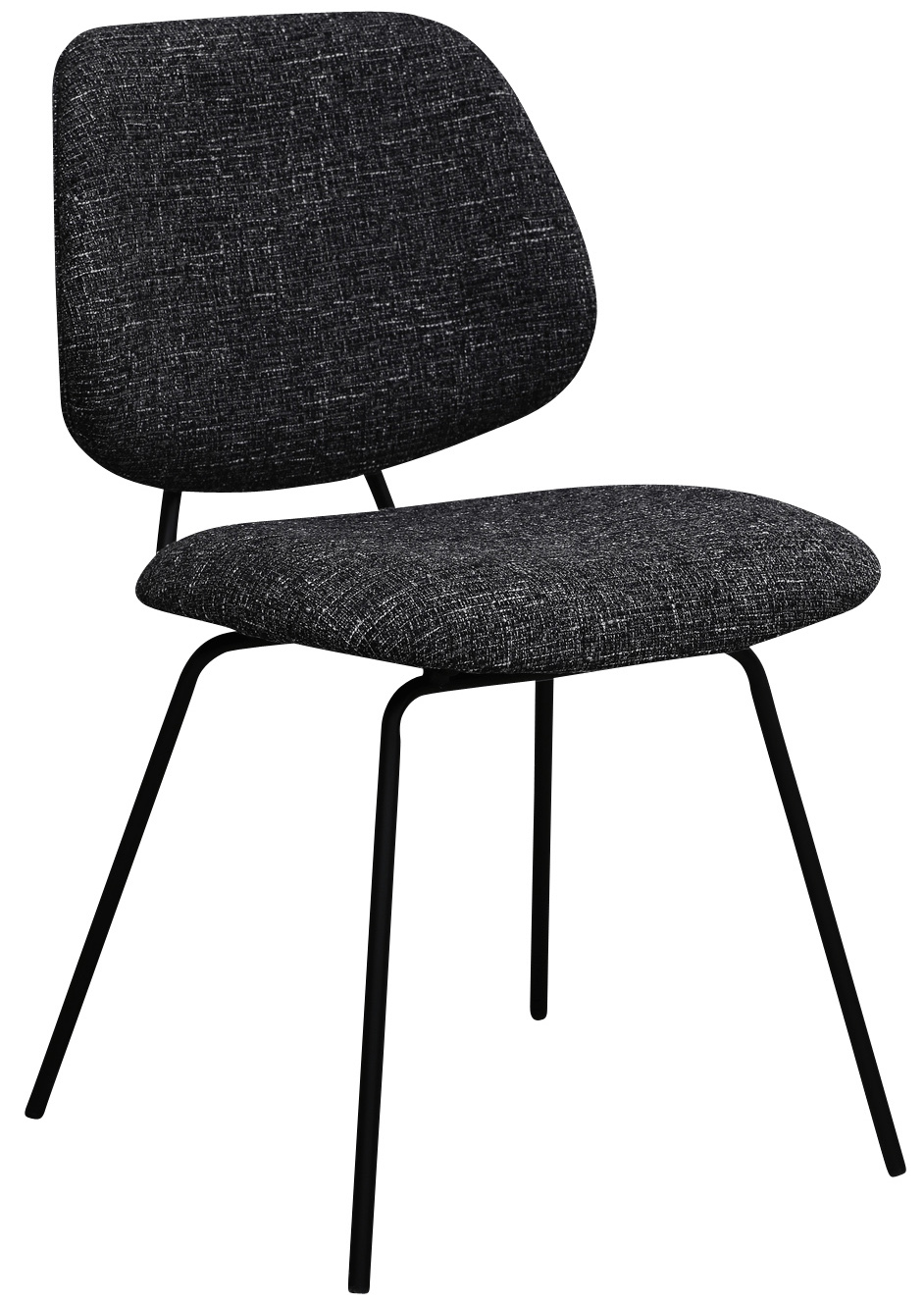 De slanke, pulverlakerede metalben i sort giver stolen et let og stilrent udtryk, samtidig med at de sikrer solid stabilitet og holdbarhed. Kombinationen af tekstur, tone og form gør stolen alsidig og nem at matche med forskellige borde og interiørstile.