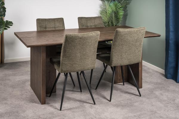 Viola er en moderne spisebordsstol fra Homeville med drejefunktion. Stolen er fremstillet i grønt møbelstof.