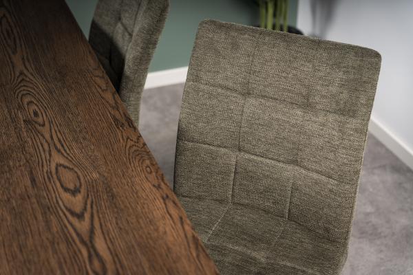 Viola er en stilren og behagelig spisebordsstol, som består af et metal skelet, skum i sæde og ryg og er betrukket med et holdbart og behageligt grønt møbelstof.